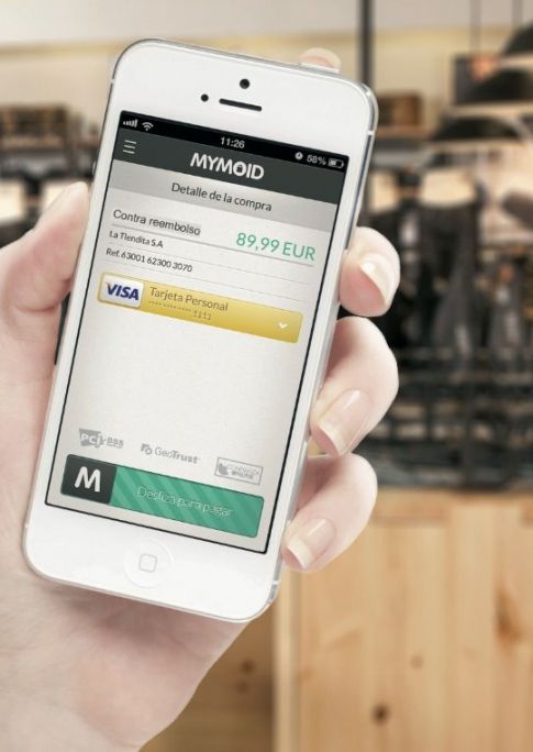 En el caso de haberse elegido el pago desde la aplicación móvil, se genera una petición desde el terminal del repartidor que Mymoid transmite al usuario, este se conecta y confirma el cargo que aparecerá en la pantalla de su smartphone. En ese momento el dispositivo móvil del repartidor recibe la confirmación del pago.