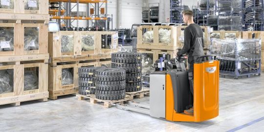 Las traspaletas cuentan con una amplitud total de solo 720 mm, que facilita su conducción en los pasillos estrechos y disponen de ruedas estabilizadoras con tres tipos de amortiguación diferentes.