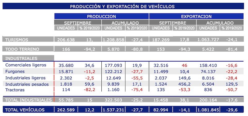 En los nueve primeros meses de 2020, la exportación de vehículos comerciales e industriales suma 247.903 unidades, un 17,6% menos que en el mismo tramo del año pasado.