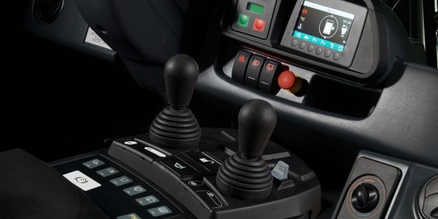 Las innovaciones técnicas alrededor del puesto del conductor incluyen una nueva unidad de control Duo Pilot, integrado en el reposabrazos multi-ajustable, proporcionando así al conductor un control preciso y receptivo de todas las operaciones realizadas con la carretilla.