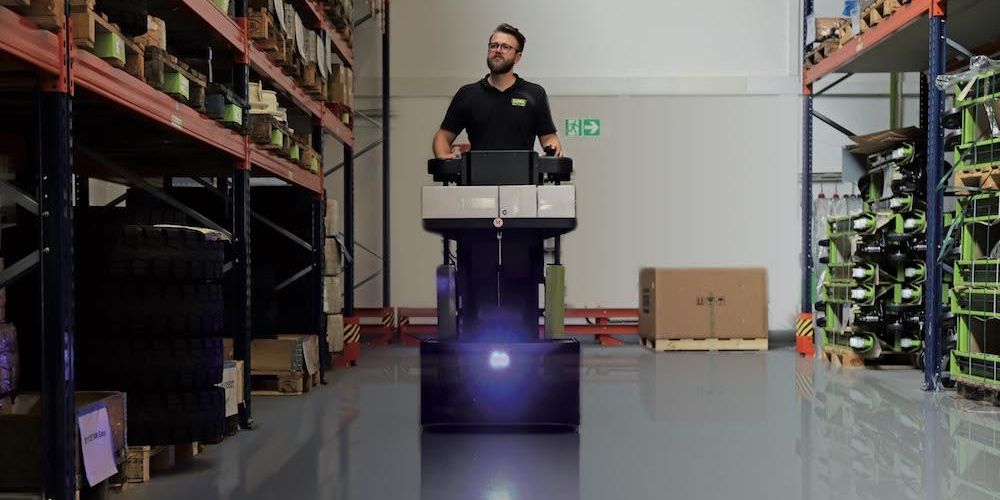 Con un ancho total de sólo 750 mm y un radio de giro de únicamente 1.260 mm, el vehículo es fácilmente maniobrable en pasillos estrechos o áreas de trabajo de espacio reducido, incluso las puertas estrechas de hasta 80 cm no son ningún problema, ya que la unidad gira en el sitio.