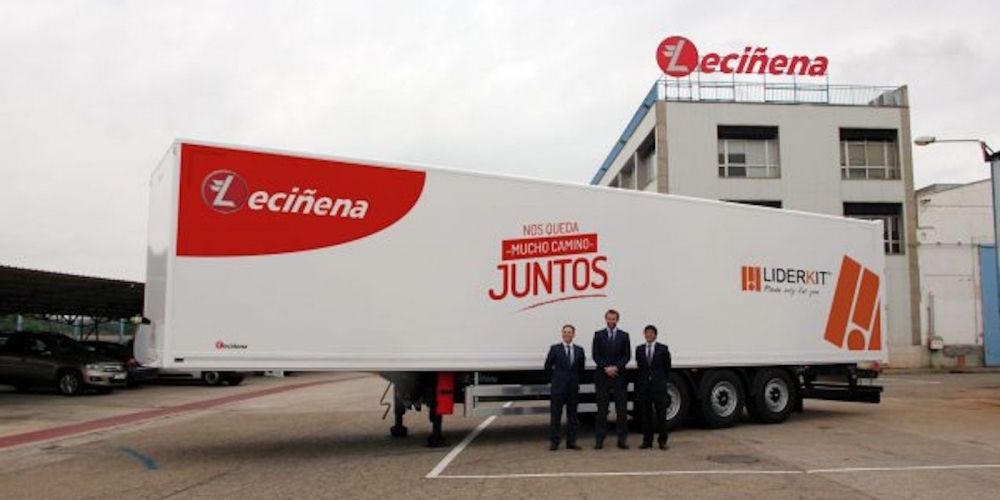 Como ya anunciaron a Cadena de Suministro en febrero, Juan Manuel Melgarejo, consejero delegado de Melgasal Invest, y Juan Fernández Alba, director general de Leciñena, el fabricante maño ha desarrollado conjuntamente con el fabricante de carrocerías Liderkit, un nuevo semirremolque de 40 toneladas y destinado principalmente al transporte de carga seca y paquetería, con carrocería elaborada con paneles Liderwood, que aportan una mayor resistencia y durabilidad.