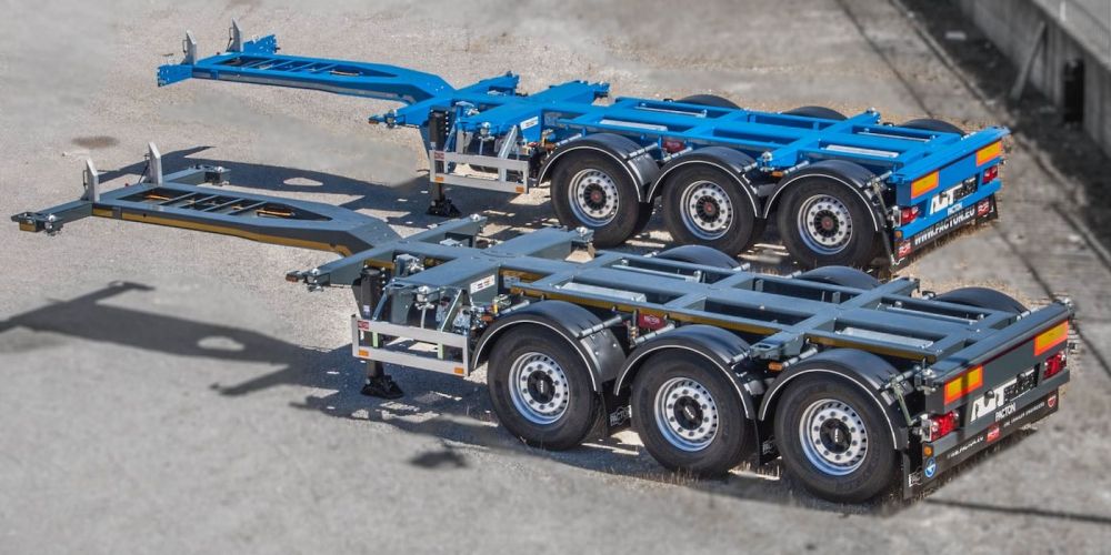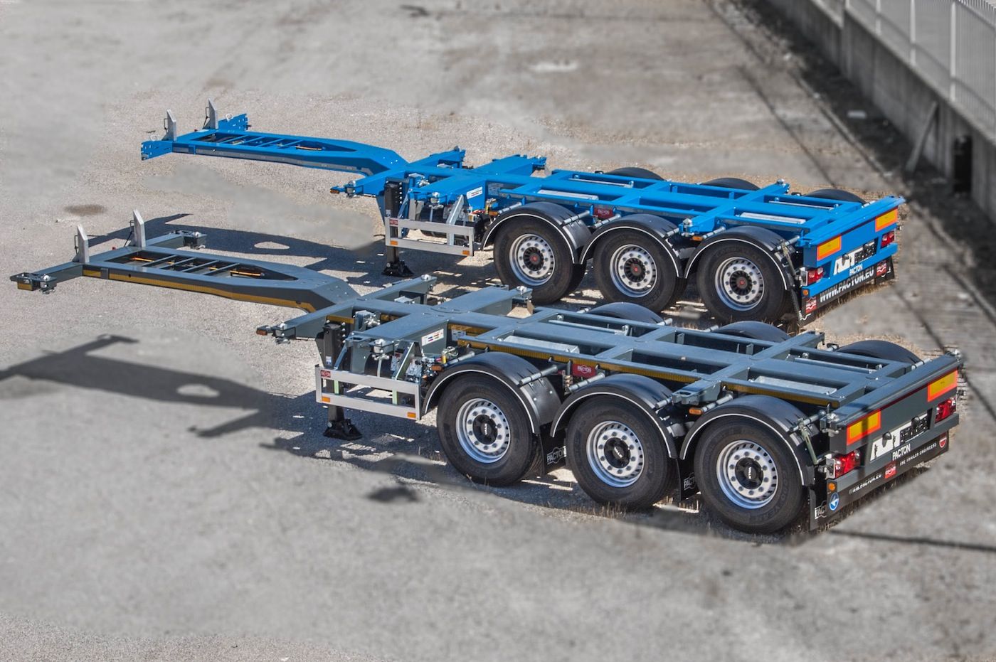 De la amplia gama de semirremolques Pacton, que incluye las marcas Kennis y Floor, en el apartado de semirremolques para el transporte de contenedores ISO, destaca el modelo Flex-XL.