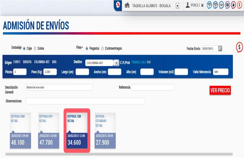 La primera experiencia de implantación es en la filial de la empresa Avianca en Colombia, con su marca Deprisa, con un mercado de 564 puntos de venta, 235 plataformas propias y 335 puntos de conveniencia.