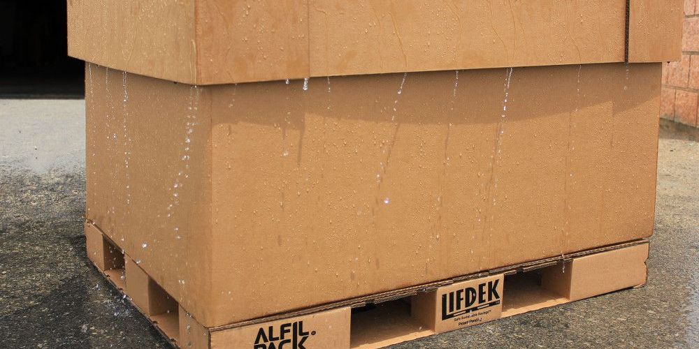 La nueva solución se aplica al cartón ondulado, al que confiere propiedades hidrófugas, de modo que el contenedor de cartón o el palet de cartón ondulado quedan impermeabilizados, manteniendo sus características físicas.