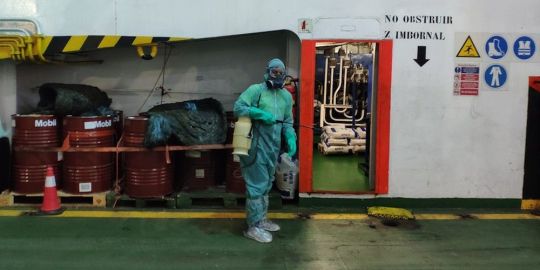 Todos los tripulantes y empleados han recibido instrucciones de cómo actuar y se mantiene una comunicación constante a bordo con el personal de prevención en tierra para plantear cualquier duda o problema que pudiera surgir.