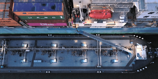 Así mismo, el compuesto usado ofrece entre un 80 y un 90% de reducción de CO2 en comparación con otros equivalentes de combustibles fósiles y, al tiempo, es, según la naviera, técnica y operativamente equivalente a los combustibles marinos derivados del petróleo.