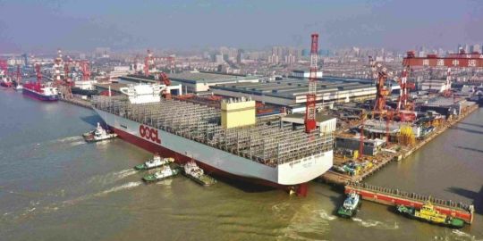En la ceremonia de presentación, celebrada en la ciudad china de Nantong, se ha desvelado este enorme barco que ostenta una eslora total de 399,99 metros y una manga de 61,3 metros.