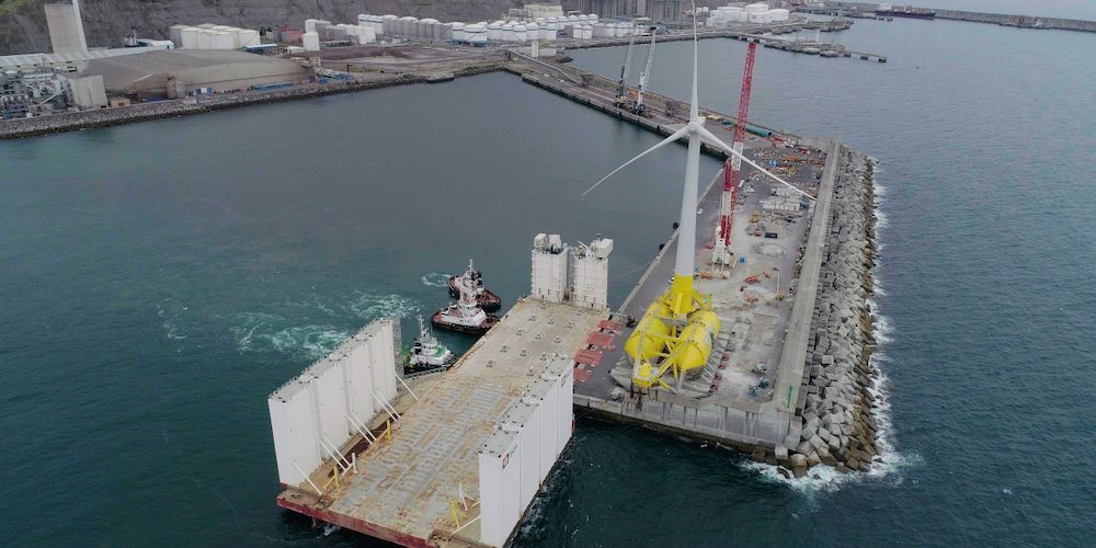 Las instalaciones del puerto de Bilbao han acogido la operativa de puesta a flote del aerogenerador eólico marino del proyecto Demosath que llevan a cabo Saitec Offshore Technologies y RWE Renewables.