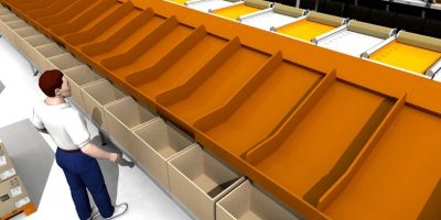 El sistema ha sido diseñado de tal forma que permite la extracción de todos los pedidos en una sola oleada reduciendo drásticamente el tiempo de recogida. Posteriormente el sistema identifica los artículos con la demanda actual procediendo a su clasificación por  tienda / destino.
