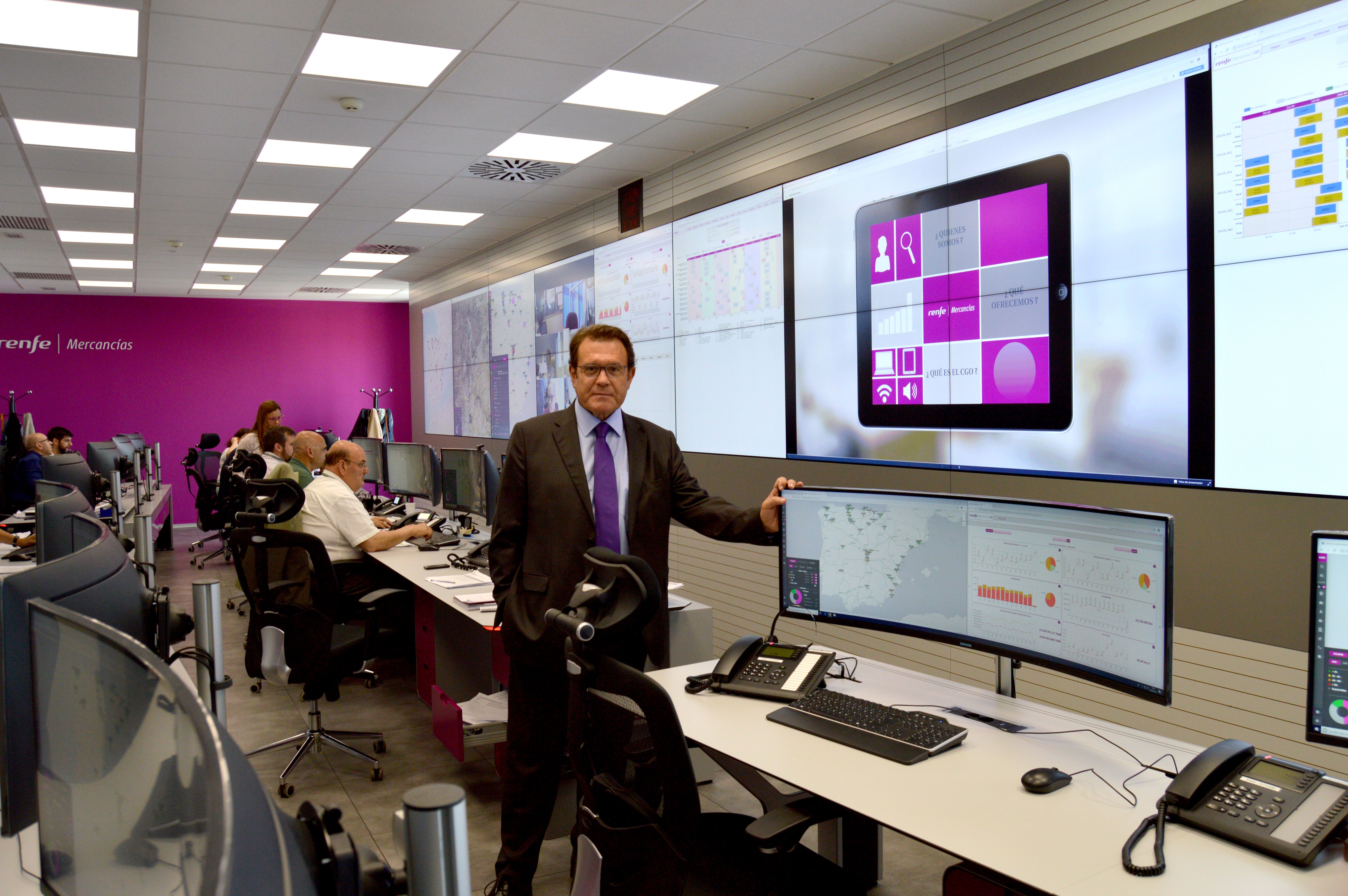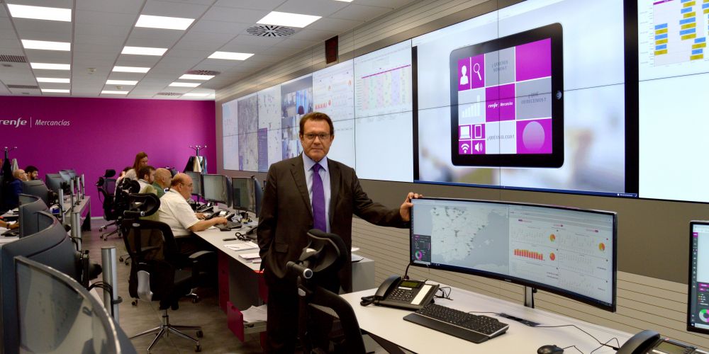 Abelardo Carrillo, director general de Renfe Mercancías, en el nuevo centro de control de Atocha.