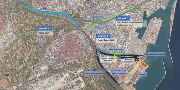 Por otro lado, también se construirá un ramal de conexión del nuevo acceso ferroviario con Can Tunis oeste en ancho mixto y se adaptarán vías de esta terminal al ancho de vía estándar.