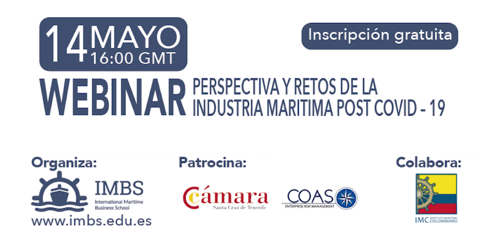 Con la colaboración de la Cámara de Comercio de Santa Cruz de Tenerife, la Escuela Internacional de Negocios Marítimos, IMBS, organiza el día 14 de mayo un webinar sobre la 'Perspectiva y retos de la industria marítima postcovid-19', que se celebra en colaboración con el Instituto Marítimo Colombiano.