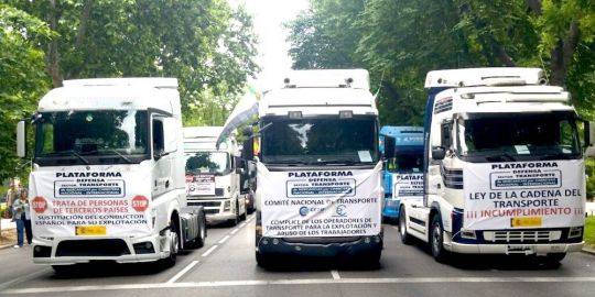 La organización señala así "el daño permanente que hacen al mercado las empresas deslocalizadas por la competencia desleal que ejercen frente a las empresas nacionales" y apunta que "la mayoría de empresas deslocalizadas son propiedad de señores que se sientan en el Comité Nacional de Transporte mediante la organización CETM".