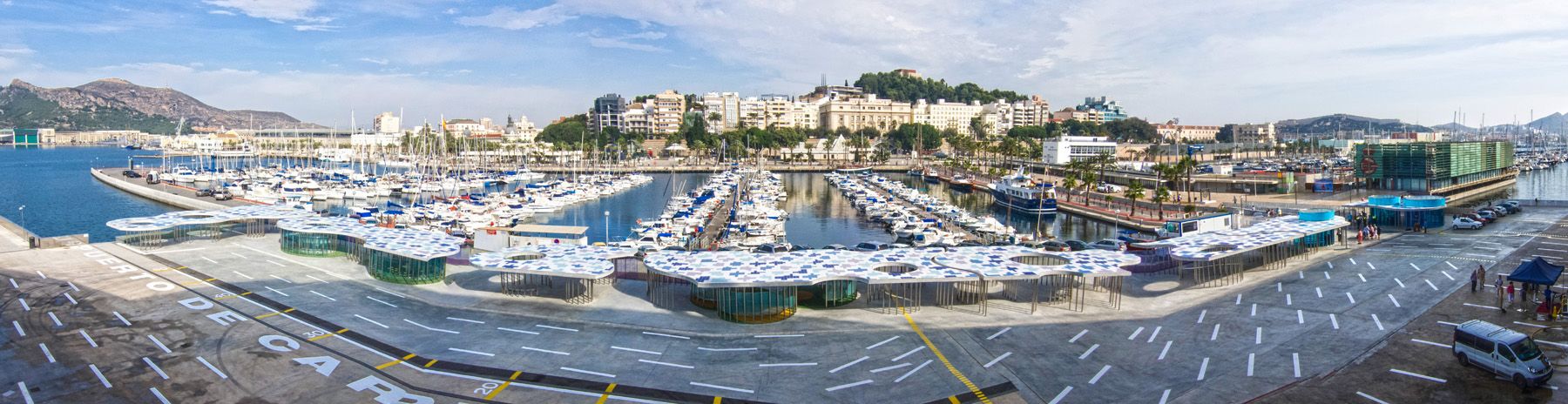 De este modo bajo ella e incorporados a su geometría se sitúan espacios en sombra que permiten el disfrute de la situación exclusiva de la ampliación del muelle, albergando zonas de descanso, zonas de juego de niños, áreas donde se informa sobre las especies marinas del entorno de Cartagena a través de vidrio serigrafiado, y un área de control situada en la zona del acceso que permite controlar la entrada y la salida de cruceristas y visitantes a la terminal de cruceros.