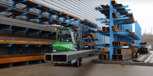 Este equipo contrapesado, que es el más pequeño del mundo, permite al operador manejar palets en menos espacio que todos los demás en el mercado, y cambiar al modo lateral en menos de tres segundos.