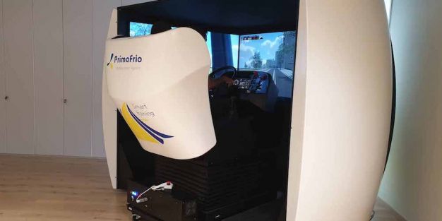 El Grupo Primafrio ha desarrollado un simulador de alto nivel de conducción virtual para su Programa de Formación para sus conductores, con el fin de recrear las condiciones de entorno y conducción de un vehículo pesado y exponer los riesgos y circunstancias a los que normalmente se enfrentan tanto conductores profesionales como noveles.