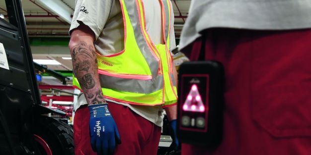 Tanto los chalecos como las unidades portátiles se pueden reprogramar fácilmente para utilizar el sistema de seguridad de la marca para evitar colisiones con carretillas elevadoras.