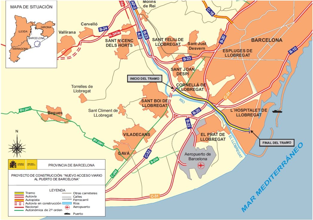 El proyecto consiste en un nuevo acceso viario al puerto de Barcelona por el sur, con sección de autovía, que está coordinado, en los tramos en los que coinciden, con el proyecto del nuevo acceso ferroviario, sobre el que ya hay acuerdo aunque está pendiente de licitación.