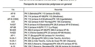 El gobierno vasco ha publicado en el BOE las medidas especiales de regulación del tráfico en la Comunidad Autónoma para el año 2017, que restringen tanto el transporte de mercancías en general de más de 7,5 tn como el de mercancías peligrosas y los transportes especiales.