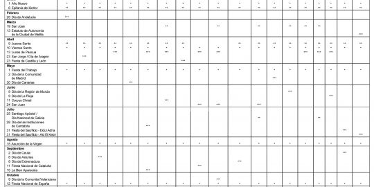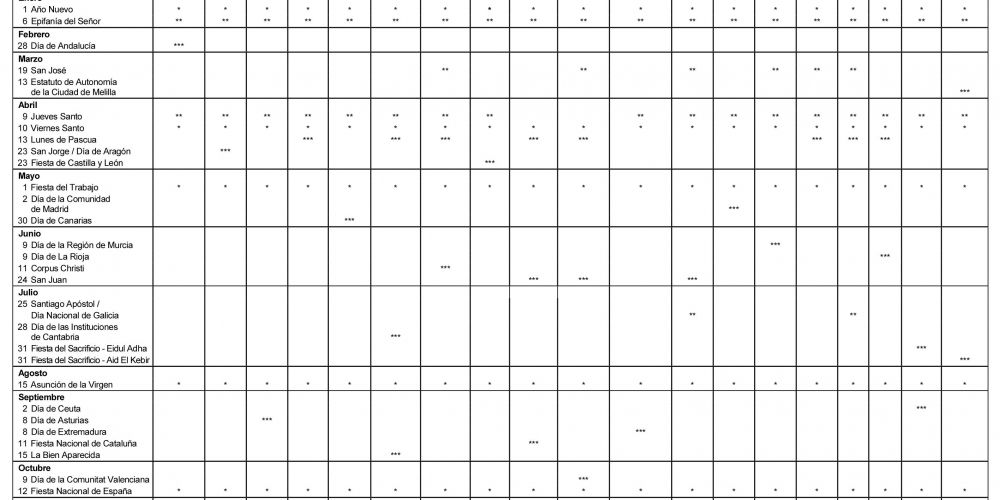 Adicionalmente, el 9 de abril, Jueves Santo, será festivo en la mayor parte de las comunidades, excepto en Cataluña y la Comunidad Valenciana.