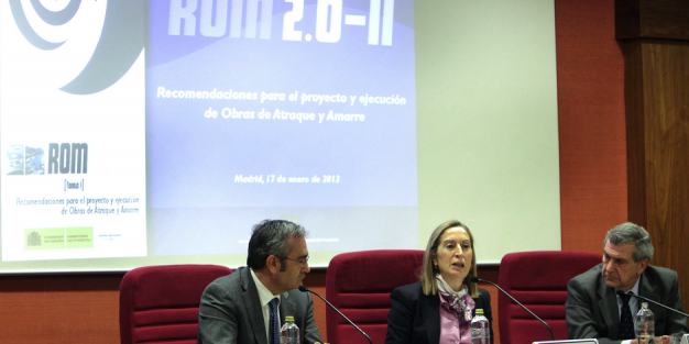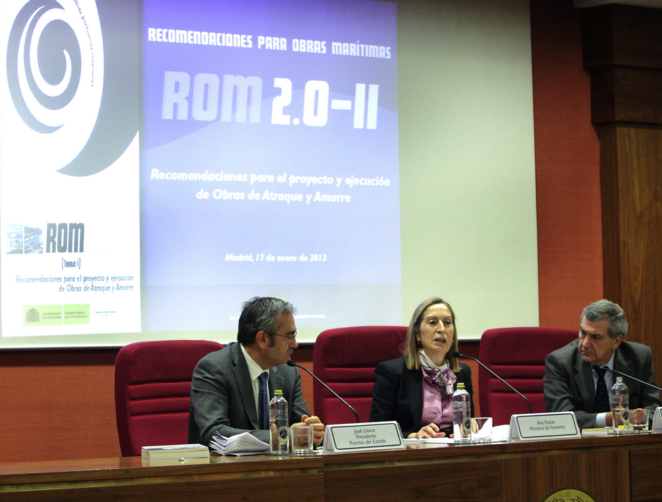 Puertos del Estado ha publicado el primer libro de una nueva serie del programa de Recomendaciones para Obras Marítimas (ROM) que está dedicado a las obras de atraque y amarre. El libro ha sido presentado por la ministra de Fomento, Ana Pastor, acompañada por el presidente de Puertos del Estado, José Llorca, y el presidente del Colegio de Caminos, Juan Antonio Santamera.