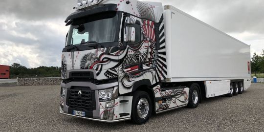 El Renault Trucks T High ‘Tatoo’ es el resultado de la propuesta realizada por el fabricante francés a los alumnos de la Escuela de Arte y Diseño Bellencour de Lyon y más en concreto del proyecto de la estudiante Anouk Méchet, que ha sido la finalmente seleccionada por internautas de entre las 23 propuestas presentadas.