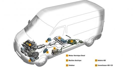 Desarrollado sobre la base de un Renault Master, este prototipo está equipado con un grupo motopropulsor que asocia máquina eléctrica (hibridación ligera) con tecnología Twin-turbo y concepción downspeeding. Combinando estas tres tecnologías, se consigue una reducción del consumo de hasta un 10 % en el uso de los vehículos con alto kilometraje.