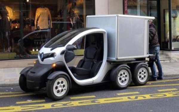 En este contexto, Renault ha transformado su Twizy, un pequeño cuadriciclo eléctrico, en un vehículo de reparto al equiparlo con un espacio para la carga de 1 m³ de capacidad, mediante la instalación de una caja trasera colocada en el espacio destinado antes a pasajeros, y montada sobre dos ruedas extras colocadas en la parte trasera.