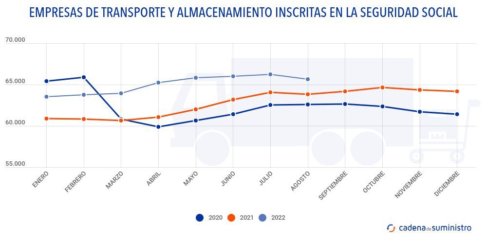Durante el pasado mes de agosto ha crecido tímidamente el número de empresas de transporte y almacenamiento inscritas en la Seguridad Social.