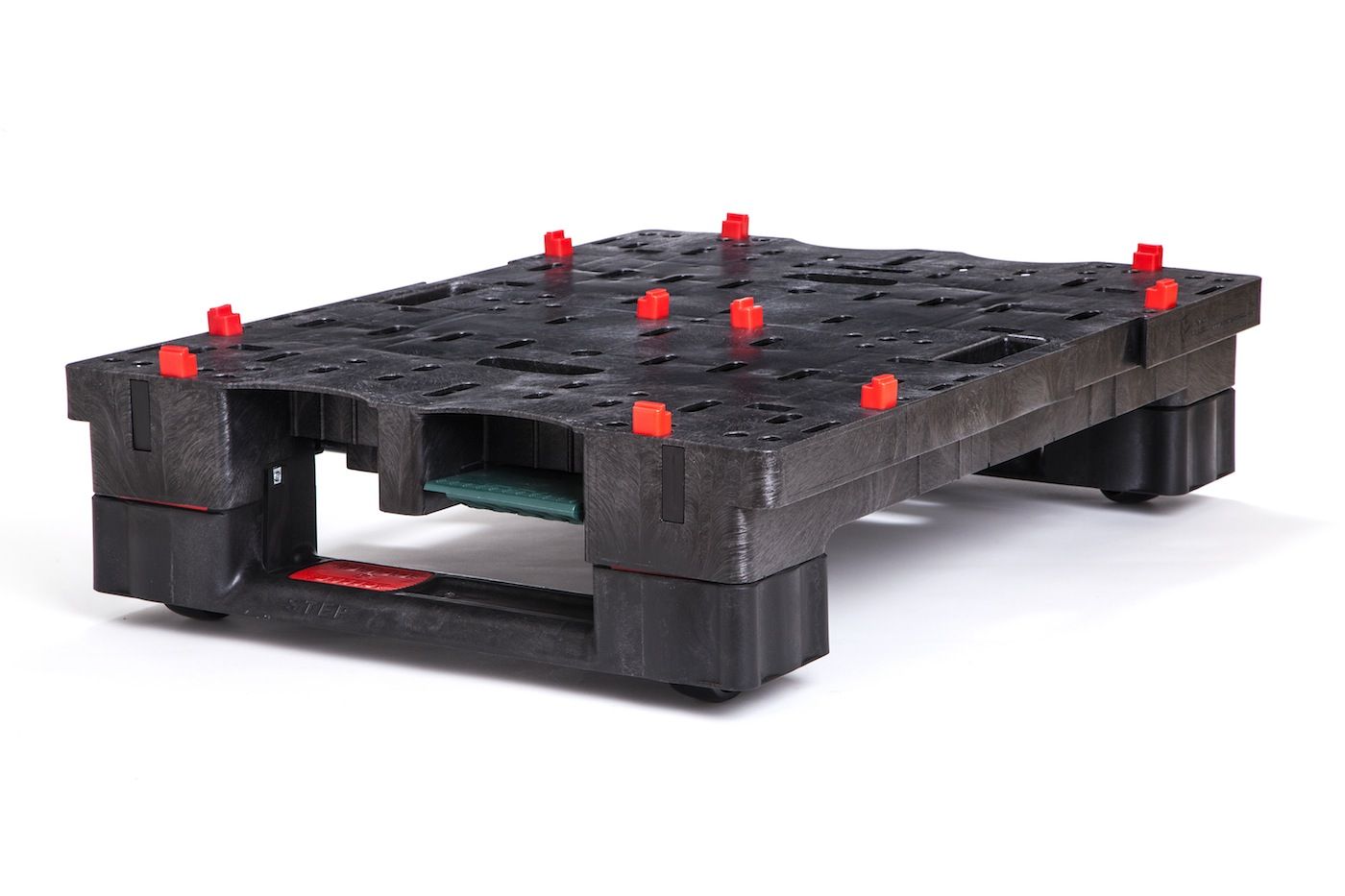 Roll n’ Pall es un novedoso palet con base rodante que se puede activar fácilmente, gracias a su simple mecanismo que se acciona con el pié. Funciona en producción como palet y en tienda como expositor, eliminando la necesidad de utilización de equipos de carga como las transpaletas.