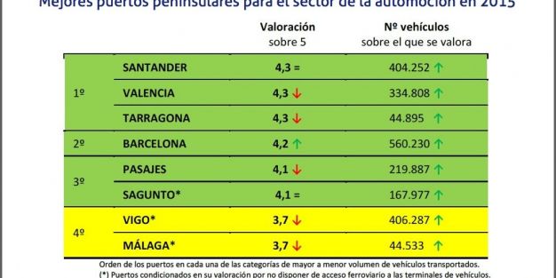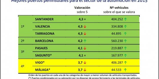 Mejores puertos peninsulares para el sector de la automocion en 2015