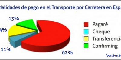 El medio de pago preferido por los clientes de los transportistas continúa siendo el pagaré con un 62%, seguido de la transferencia, 14%, el confirming, 13% y el cheque, con un 11%.