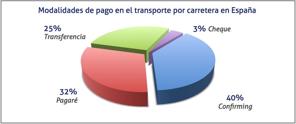 Los resultados del mes de marzo apuntan a que el medio de pago preferido por los clientes de los transportistas es el confirming, un 40%, seguido del pagaré, un 32%, la transferencia, un 25%, y el cheque, un 3%.
