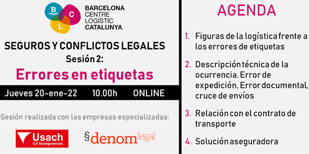 El Barcelona-Catalunya Centre Logístic, BCL, organiza el día 20 de enero la segunda sesión del bloque temático sobre 'Seguros y conflictos legales', centrada en los 'Errores en etiquetas'.