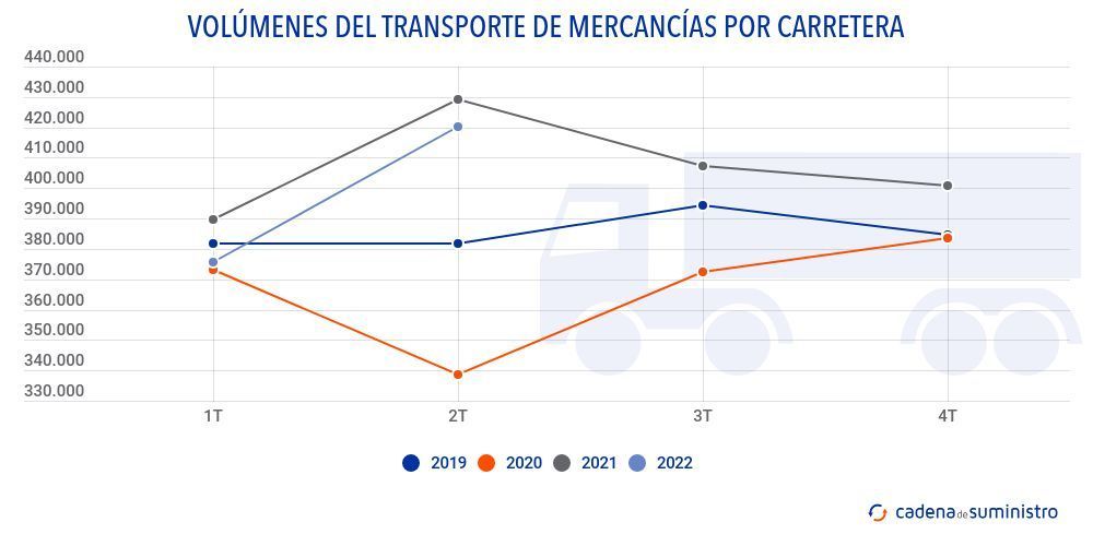 Al mismo tiempo, el transporte internacional de mercancías suma 24.169.940 toneladas en el trimestre, un 0,36% más que en idéntico tramo de 2021.