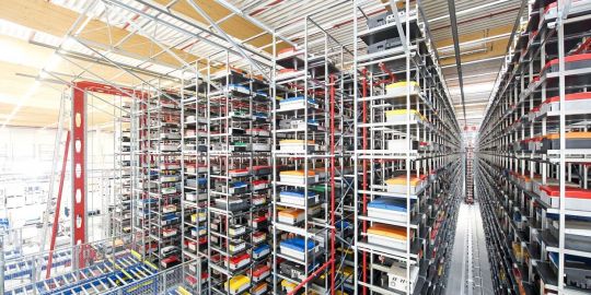 El sistema diseñado prevé que los 1.800 artículos más solicitados estén en un almacén de gran altura automático de palets. Así, en el almacén 'miniload' automático 1, AKL 1, se almacenan en bandejas los artículos de alta rotación, que constituyen más del 50% del volumen de entrega.