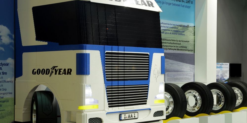 El camión de Lego de Goodyear a escala 1:1 que fue expuesto durante la última edición de la Feria de Vehículos Comerciales IAA 2012 celebrada en Hanover, ha sido vendido finalmente en eBay por la cantidad de 6.050 euros. Los beneficios obtenidos serán destinados a beneficio de la iniciativa DocStop for Europeans.