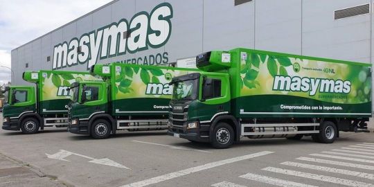 El grupo asturiano Hijos de Luis Rodríguez, propietario de Supermercados Masymas, mantiene una fuerte apuesta por el transporte sostenible y la reducción de la huella de carbono. Por eso, recientemente ha incorporado a su flota cinco unidades a GNL de Scania, que cuentan con un motor de 340 CV y un depósito de 550 litros con capacidad para 200 kg de GNL.