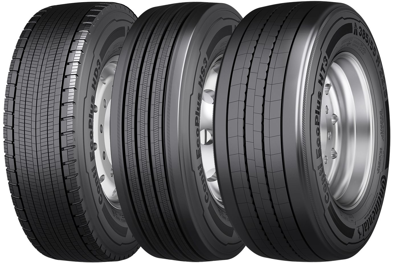 Los neumáticos Conti EcoPlus están diseñados especialmente para vías rápidas y autopistas. Se caracterizan por su baja resistencia a la rodadura, sin detrimento para su vida útil. Son adecuados para todos los ejes de camión y remolque: los HS3 para ejes de dirección, los HD3 para ejes de tracción y los HT3 para ejes de remolque. El diseño de los neumáticos contribuye a una reducción de consumo de combustible de hasta 1,9 litros por cada 100 kilómetros, comparado con generaciones anteriores para el mismo kilometraje.