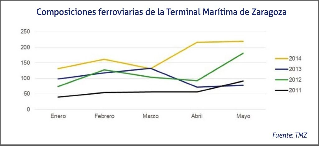 En 2009, se gestionaron en la plataforma de Zaragoza 23.000 contenedores, mientras que en 2013 el tráfico de contenedores alcanzó los 93.500, y las previsiones para este año es que se superarán los 100.000.