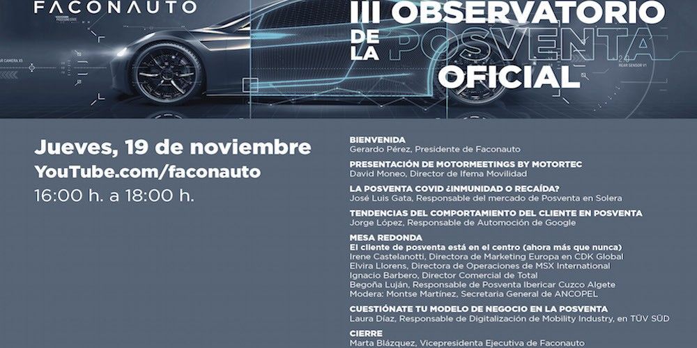 Apenas faltan unos días para que dé comienzo el III Observatorio de la Posventa Oficial de Faconauto, que se retransmitirá en directo e incluirá una mesa redonda con expertos de primer nivel que debatirán sobre el cliente de posventa.