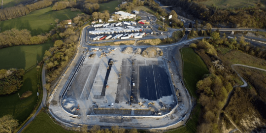El proyecto de la nueva plataforma, con un presupuesto total de 2,9 millones de euros y un plazo de ejecución de un año, comenzó a ejecutarse en octubre del pasado año y prevé unificar en una única plataforma las dos explanadas anteriores conformando un aparcamiento de 190 plazas para los camiones que circulen en sentido Bilbao.