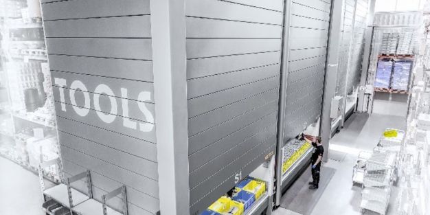 El proveedor de intralogística ha instalado cuatro armarios verticales de 9,8 metros de alto, 4,5 metros de ancho y 3 metros de profundidad para albergar unas 6.800 referencias que suponen el 30% del portafolio de productos de la compañía industrial.