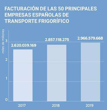 En términos generales, las 50 mayores empresas españolas de transporte frigorífico han facturado el pasado 2019, último año del que figuran cuentas publicadas oficialmente de casi todas ellas, un total de 2.857,12 millones de euros, registro que implica un crecimiento de un 3,83% con relación a 2018.