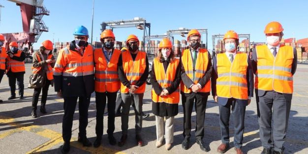 La ministra de Transportes, Movilidad y Agenda Urbana, Raquel Sánchez, ha visitado las instalaciones de Hutchinson Ports Best en el puerto de Barcelona, cuya ampliación se aprobó en diciembre.