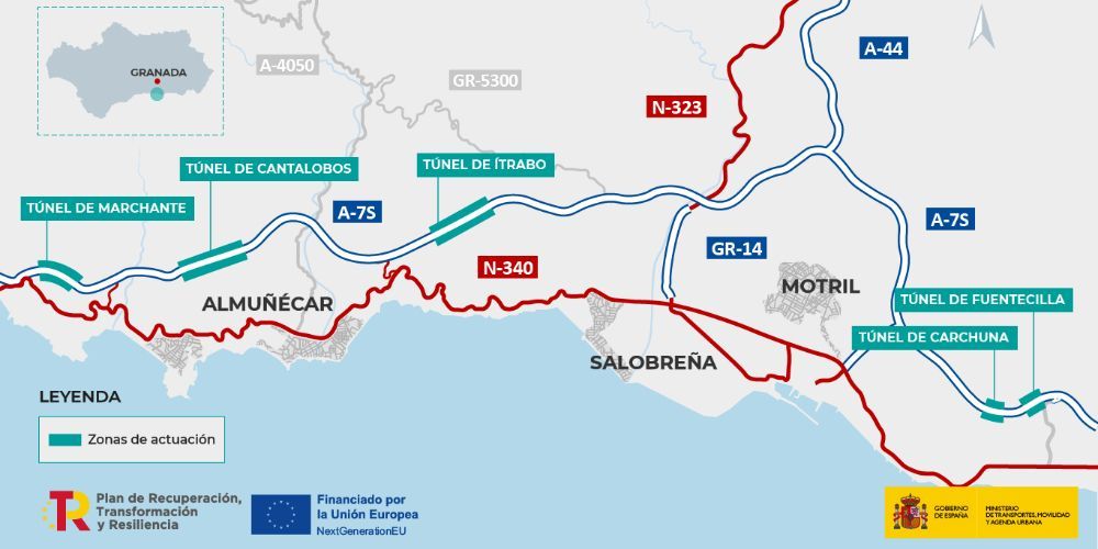 El Ministerio de Transportes, Movilidad y Agenda Urbana, Mitma, ha formalizado un contrato por un valor de 12,9 millones de euros para llevar a cabo obras de modernización y mejora en varios túneles ubicados en la autovía A-7 en la provincia de Granada.