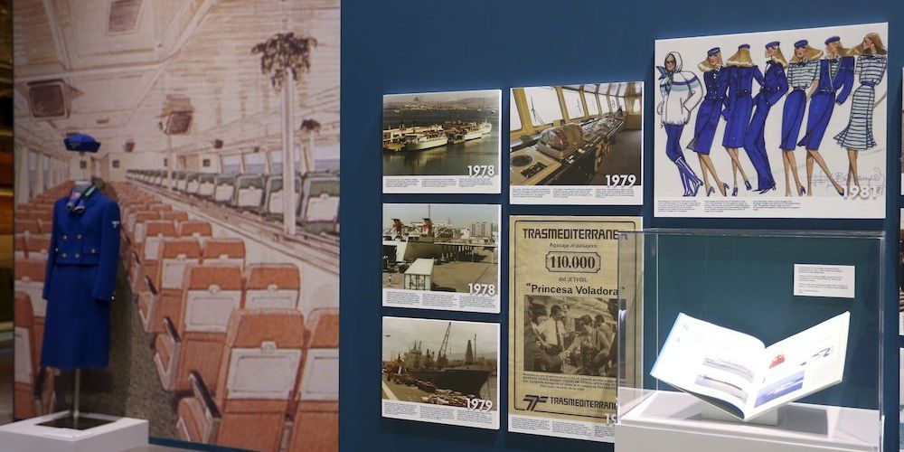 La exposición '100 años de Trasmediterránea' recorre la historia de la naviera, se divide en cuatro etapas con grandes chimeneas que van guiando en el recorrido a través de estos periodos en que se divide la muestra y consiste en una muestra de fotografías de los buques, piezas y maquetas procedentes de la colección de Transmediterránea del Museu Marítimo de Barcelona, así como otras piezas pertenecientes a la compañía.