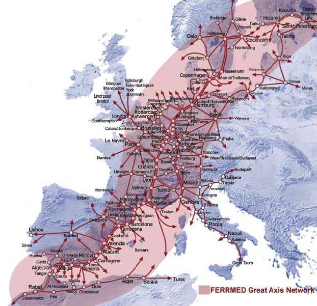 Ferrmed propone la circulación de este tipo de trenes sólo en unos pocos corredores de la Red Central Transeuropea recientemente definida por la Comisión Europea. En él se han elegido los corredores que han de unir las principales áreas industriales y logísticas así como los puertos más importantes.