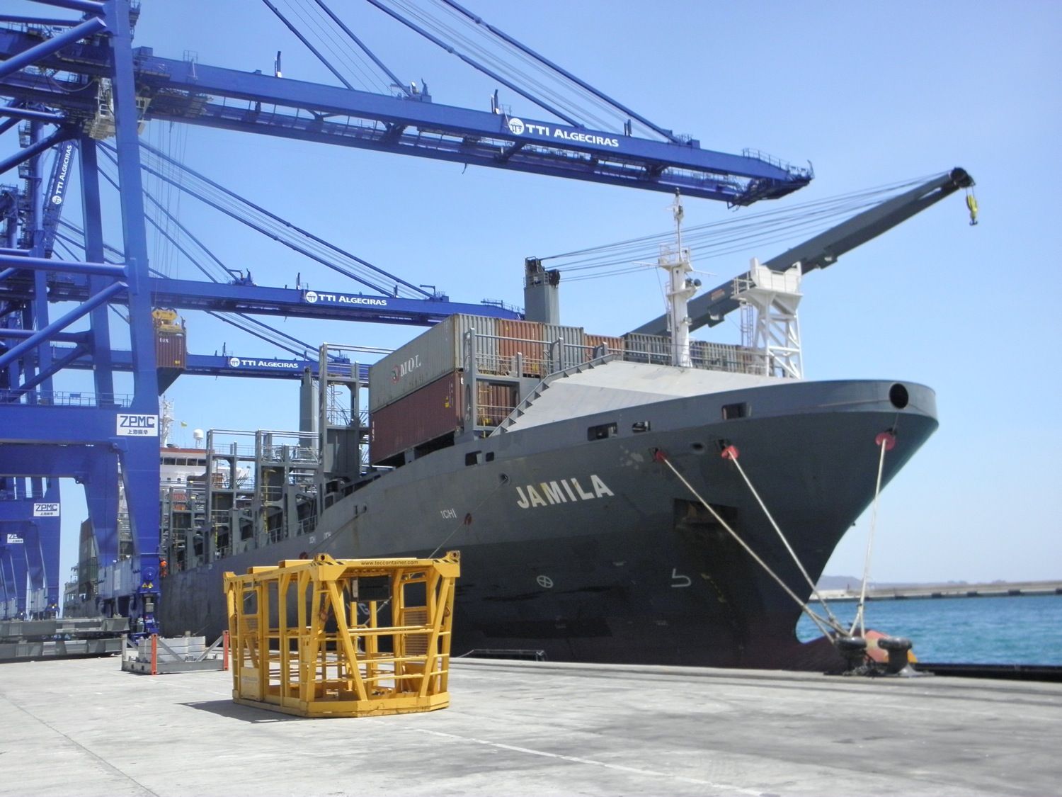 Responsables de la Autoridad Portuaria de la Bahía de Algeciras y de la terminal semiautomática han dado la bienvenida al buque Jamila que se ha convertido en el primer navío de la naviera MOL en atracar en la terminal semiautomática ubicada en la zona de Isla Verde Exterior del puerto de Algeciras.